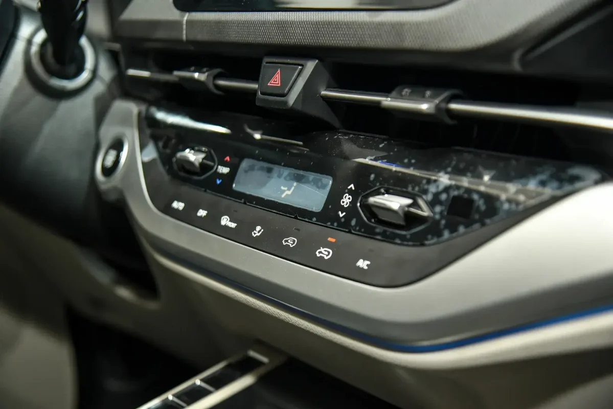 Hệ thống điều hòa là loại tự động 1 vùng. Các phím bấm chức năng là dạng cảm ứng thay vì vật lý.