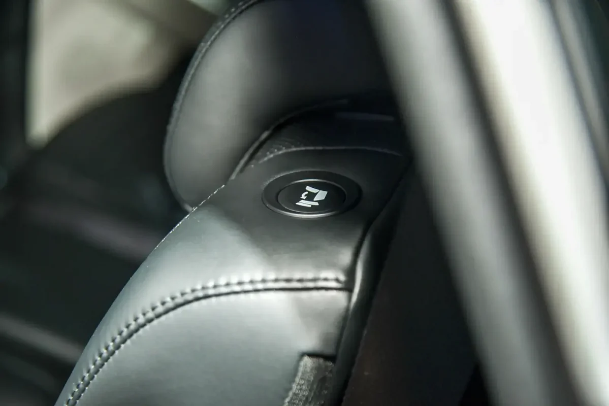 Để xuống hàng ghế thứ ba, chỉ cần bấm nút ở phần vai ghế hàng sau bên người lái. Ghế gập điện là một chi tiết đáng chú ý của Carens so với các đối thủ.