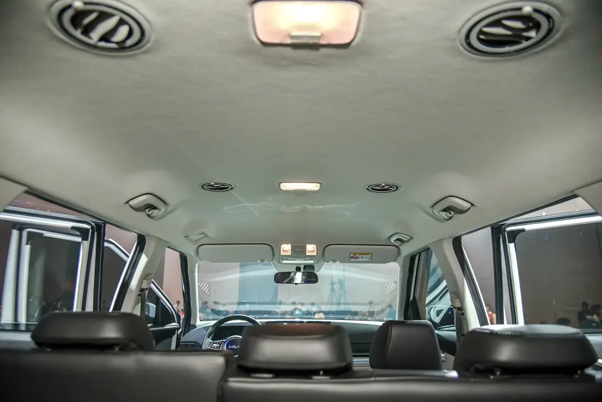 Một điểm cộng về tính thẩm mỹ của Kia Carens là điều hòa hàng sau được làm âm trần thay vì có một dải ô cửa gió như Mitsubishi Xpander, Toyota Veloz… Cả hàng hai và hàng 3 đều được bố trí cổng sạc USB Type-C.
