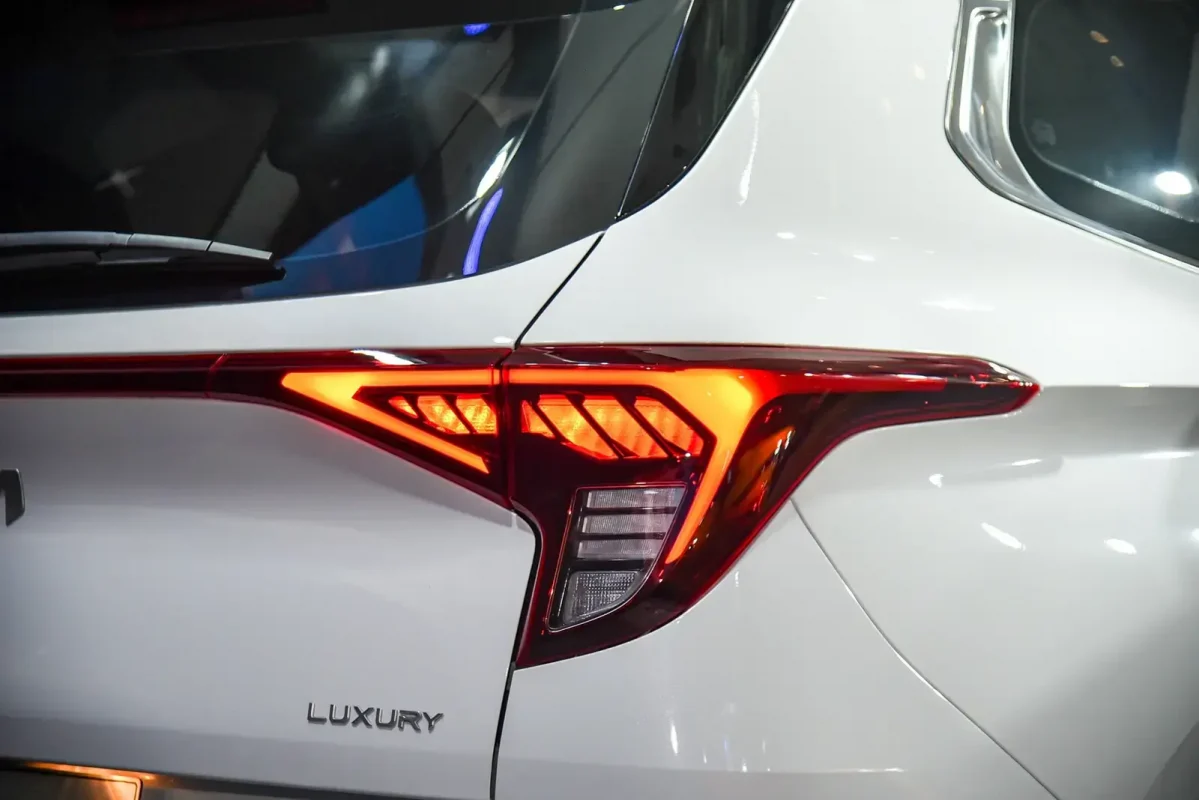 Ở phía sau, cụm đèn hậu LED được kết nối liền mạch với đồ họa dạng bản đồ chòm sao độc đáo. Cản sau 2 tông màu kết hợp dải crôm họa tiết kim cương mang lại ấn tượng mạnh mẽ, tương phản. Cánh hướng gió thiết kế tối ưu khí động học, tích hợp đèn phanh trên cao giúp đảm bảo tín hiệu an toàn khi vận hành trên đường.