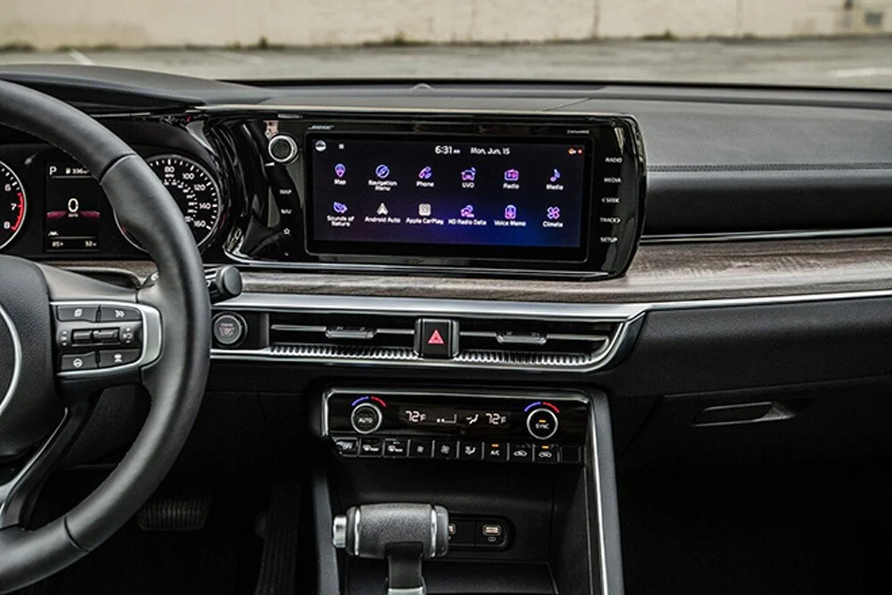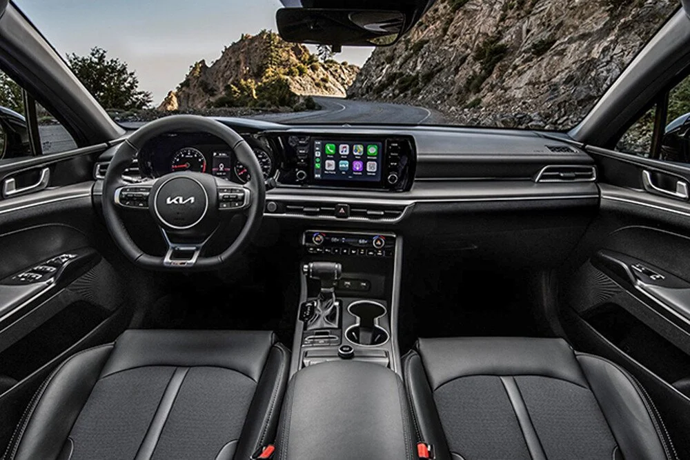 KIA K5 được trang bị màn hình cảm ứng có kích thước 10.25 inch tiêu chuẩn. Hệ thống thông tin giải trí tích hợp Apple Carplay, Android Auto tiêu chuẩn.