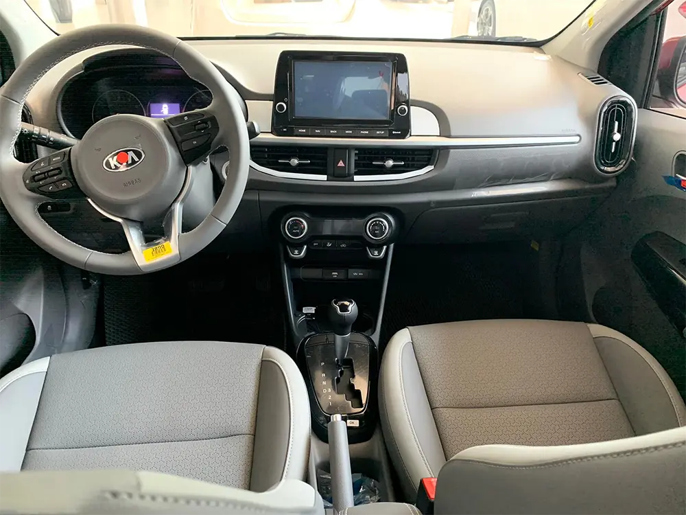 KIA Morning AT vẫn sử dụng ghế ngồi bọc da, màn hình giải trí 8 inch, đề nổ nút bấm… giống với Kia Morning X-Line và GT-Line.