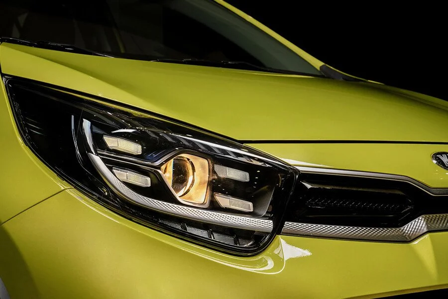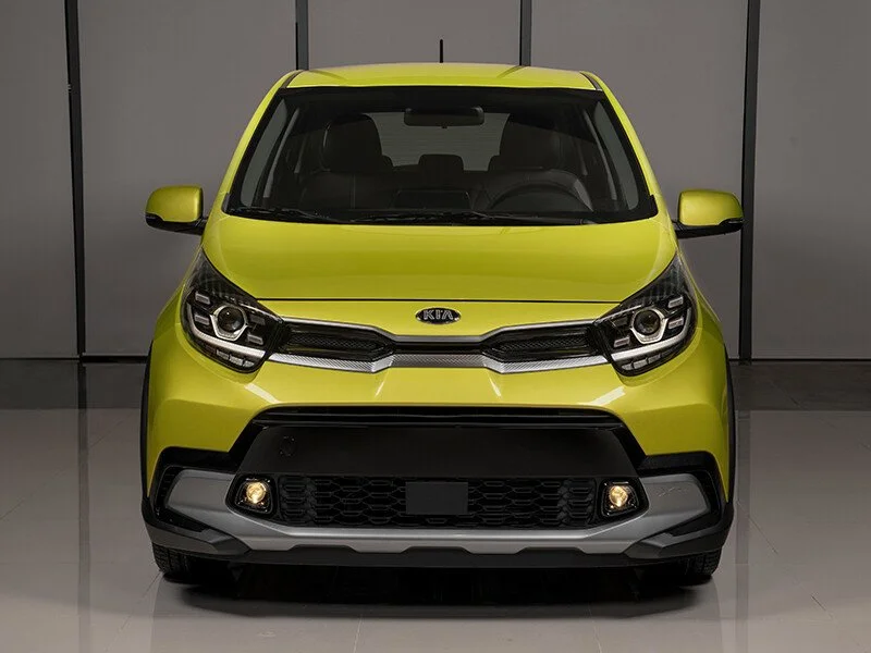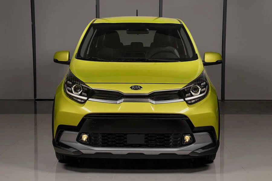 Ngay từ phần đầu xe, KIA Morning X-Line đã tạo ấn tượng với trang bị lưới tản nhiệt hình mũi hổ đặc trưng được tinh chỉnh với viền mạ crôm bao quanh kéo dài đến cụm đèn pha cũng được tái thiết kế. Dải đèn LED ban ngày gồm 4 bóng đèn bao quanh đèn chính dạng gương cầu trông thiết kế hiện đại.