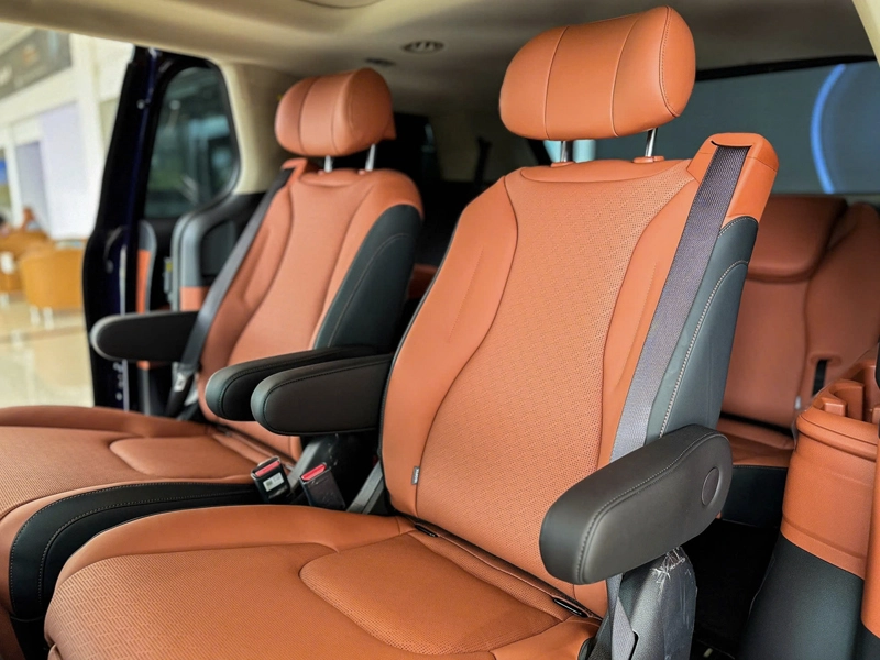 Trên phiên bản 7 chỗ với 2 ghế thương gia cao cấp trang bị tính năng chỉnh điện, chế độ ngả lưng ghế cao cấp 1 chạm tích hợp sưởi, làm mát kết hợp chế độ thư giãn thiết lập tư thế nằm không trọng lực.