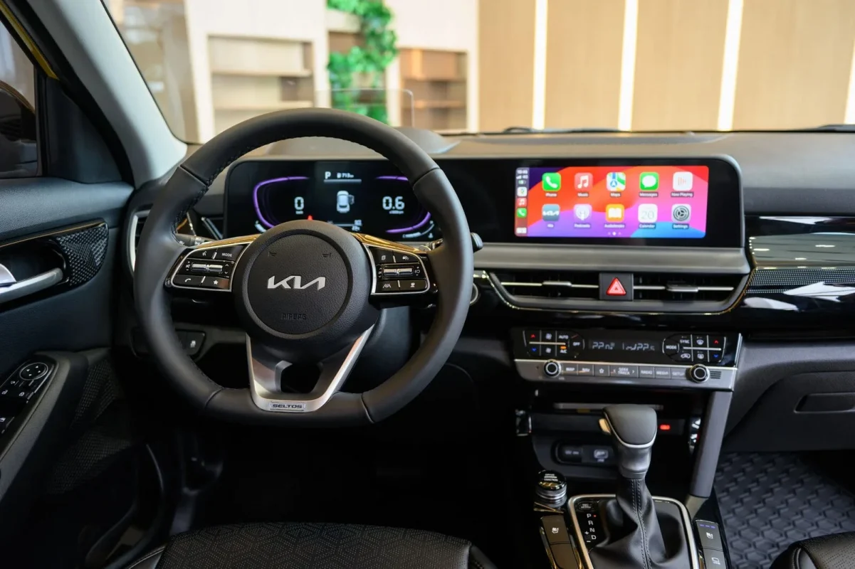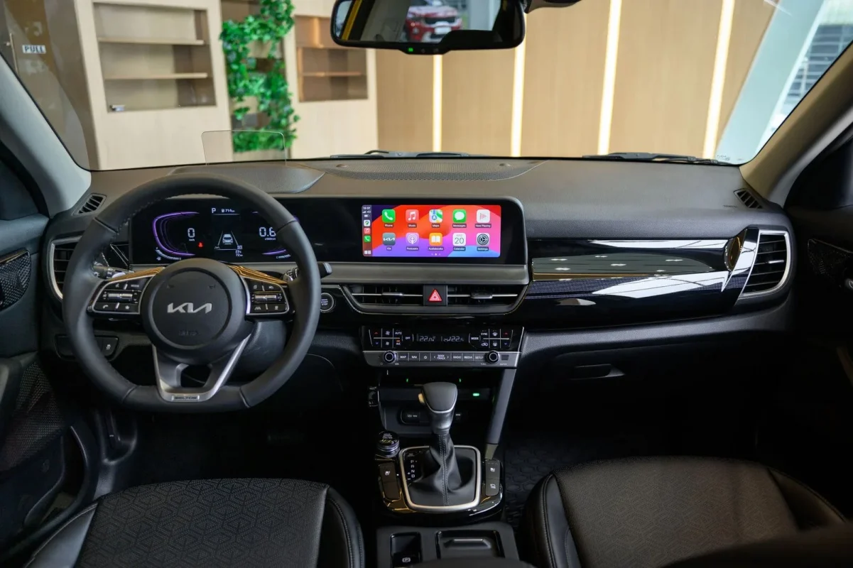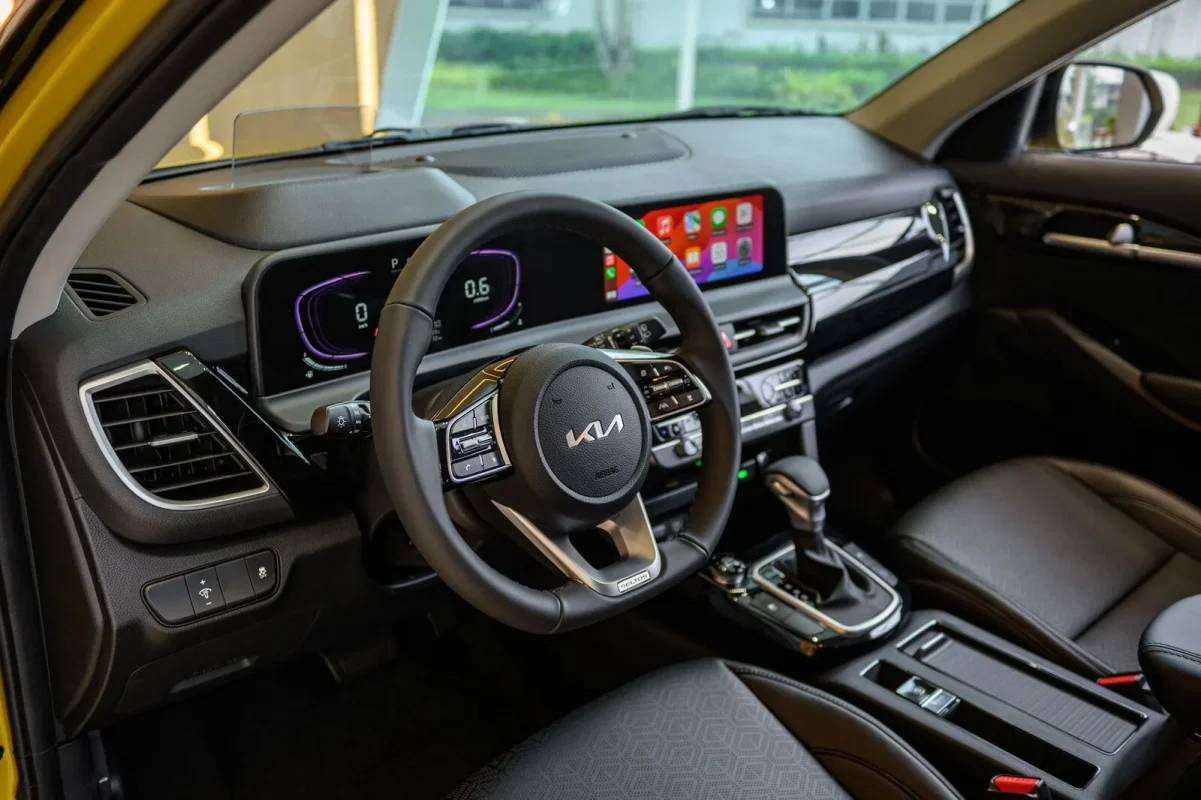 Điểm mới bên trong nội thất bao gồm màn hình giải trí trung tâm 10,25 inch giống đời cũ, nhưng cụm đồng hồ nâng cấp lên loại Full LCD 10,25 inch (bản 1.5L Premium). Cả hai màn hình này nằm trên một mặt phẳng và hơi cong giống Sportage, không còn thiếu kết nối như đời cũ