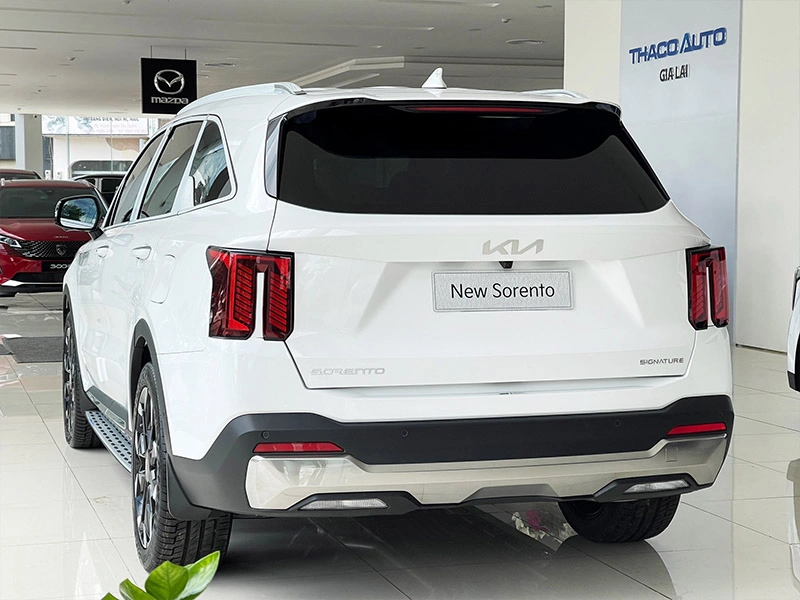 Đuôi xe được thiết kế bề thế, vuông vức và góc cạnh. Xe trang bị cụm đèn hậu LED “Star-map” được thiết kế lại theo chiều dọc kết hợp cùng cản sau được hòan thiện bạc thanh lịch và sang trọng., với đồ họa LED bắt mắt, tạo điểm nhận diện độc đáo cho Sorento.