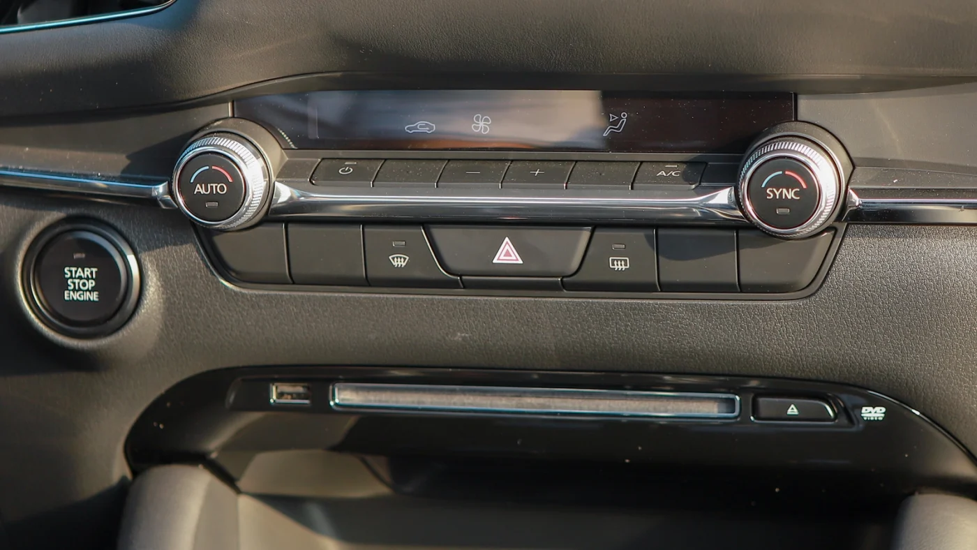 Khu vực cần số được bố trí tiện lợi với phanh tay điện tử, Auto Hold cũng núm xoay điều chỉnh hệ thống Mazda Connect kết nối với màn hình trung tâm.