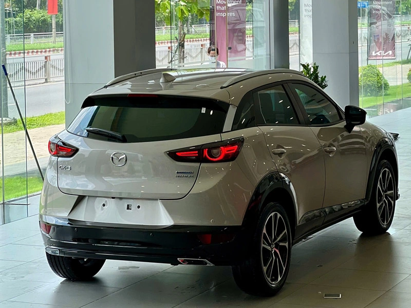 Đuôi xe New Mazda CX-3 được đánh giá cao với những đường nét nhấn nhá gãy gọn, mang đến cảm giác thể thao và hiện đại. Cụm đèn hậu sử dụng thiết kế LED mắt chim ưng đặc trưng của Mazda, tạo hiệu ứng thị giác mạnh mẽ.